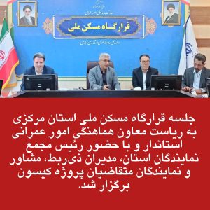 جلسه قرارگاه مسکن ملی استان مرکزی به ریاست معاون هماهنگی امور عمرانی استاندار و با حضور رئیس مجمع نمایندگان استان، مدیران ذیربط، مشاور و نمایندگان متقاضیان پروژه کیسون برگزار شد.