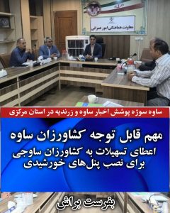 🔸 اعطای تسهیلات به کشاورزان ساوجی برای نصب پنلهای خورشیدی