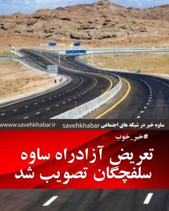 هیئت وزیران به پیشنهاد وزارت راه و شهرسازی و از طریق مشارکت بانکها و سایر منابع مالی و پولی کشور، با اجرای طرح تعریض آزادراه ساوه – سلفچگان موافقت کرد.