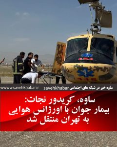 ساوه، کریدور نجات: بیمار جوان با اورژانس هوایی به تهران منتقل شد