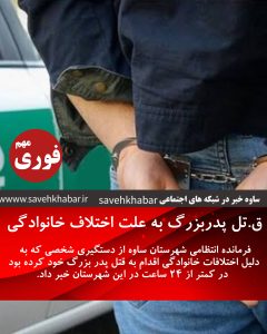 قتل پدربزرگ به دليل اختلافات خانوادگی در ساوه